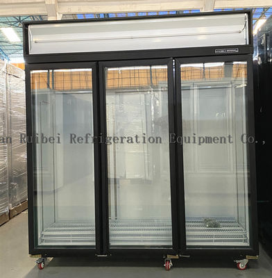 RUIBEI Glass door refrigerator has a Black front, top and sides, and the floor is made of stainless steel to simplify the cleaning process if product spills in the unit. This refrigerator includes eight PVC-coated shelves for storage that adjust for flexibility. With LED lights, the interior is bright so customers can see product through the glass door. Since the glass is triple paned, cold air is kept in the cabinet, and polyurethane insulation traps cold air. Mounted in the bottom of the display freezer, the condenser is accessible because its slide-out design provides convenience for servicing and cleaning. The temperature in this freezer merchandiser can be set between 2 and 8 degrees, and the unit has a solid-state thermostat and digital temperature display.